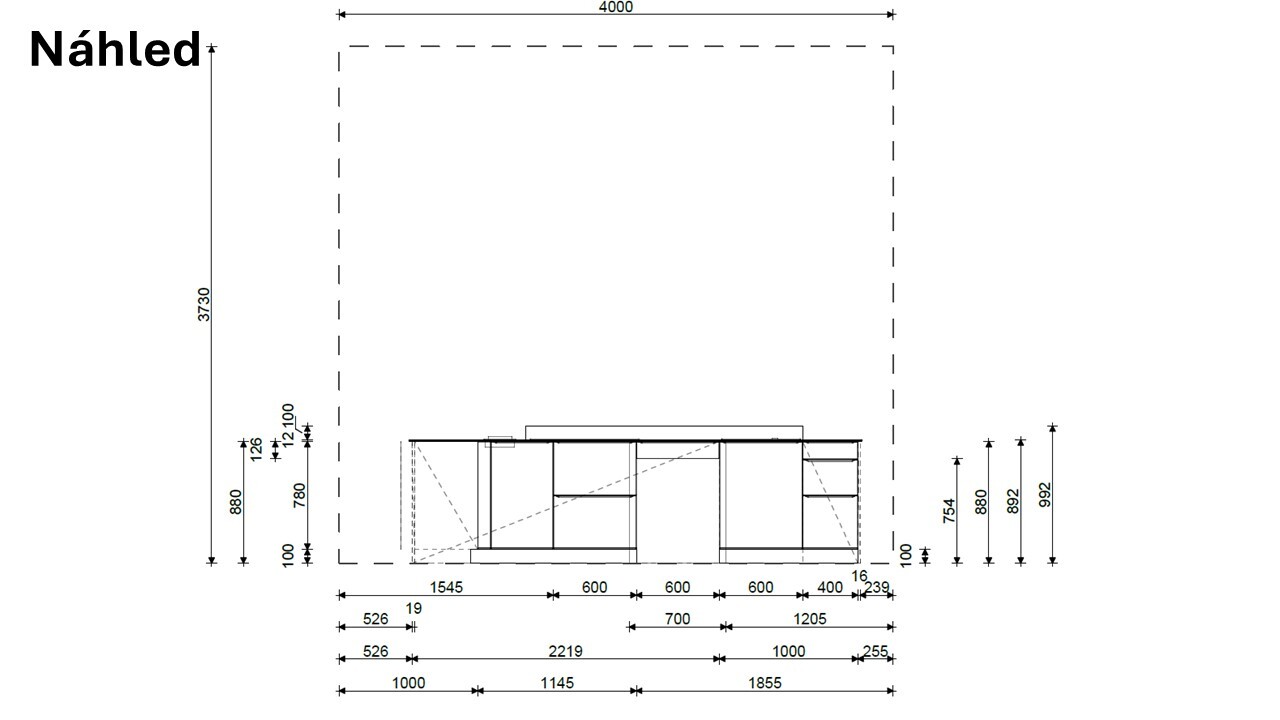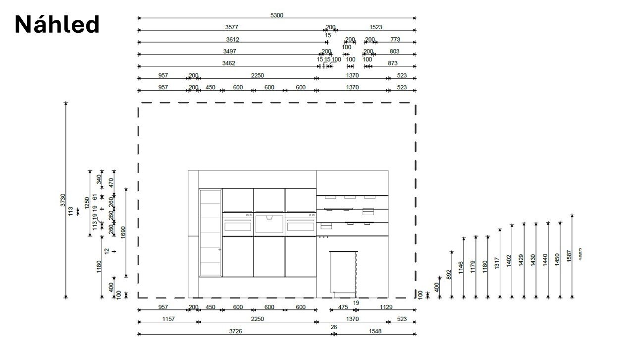 Pokud Vám kuchyně nesedne přesně do Vašeho prostoru, umíme jednotlivé prvky přeskládat a tak vytvořit třeba úplně jiný tvar kuchyně.